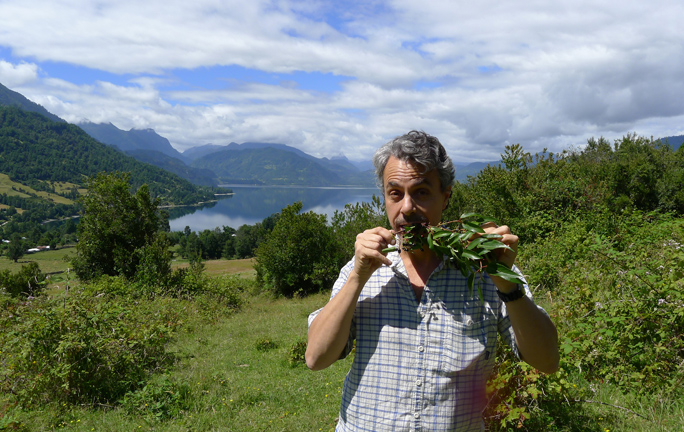 Chris with Maqui Berry, at Lake Maihue'. Zoe Helene © 2011